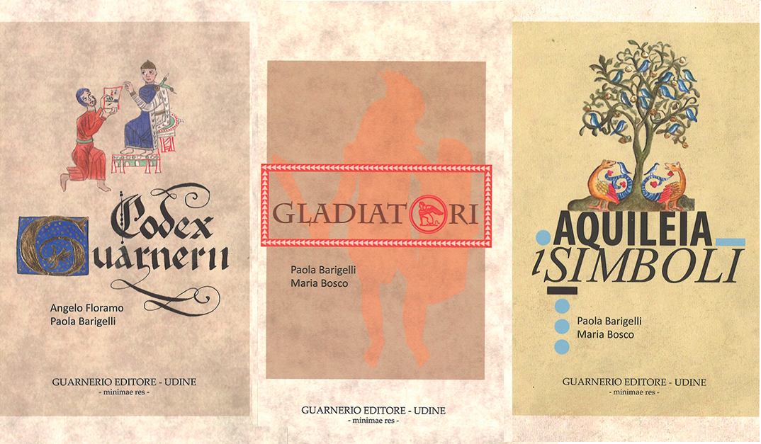 La Guarnerio Editore di Udine, pur in periodo di Covid-19 con le note difficoltà del settore dell’Editoria, pubblica nel mese di maggio i primi tre volumi della nuova collana minimae res: Codex Guarnerii | Gladiatori | Aquileia – i Simboli I quaderni, frutto di un attento lavoro di illustrazione, sintesi di contenuti ed editing, vogliono contribuire alla conoscenza di temi ed argomenti di interesse culturale attraverso testi e illustrazioni accattivanti, facilmente fruibili ed efficaci dal punto di vista comunicativo sia per un pubblico giovane che adulto. La Guarnerio Soc. Coop. produce e pubblica autonomamente -servendosi di abili stampatori locali- contenuti culturali riguardanti tematiche interessanti e rilevanti per il pubblico e il territorio, attraverso il proprio canale editoriale Guarnerio Editore. L’attività editoriale realizzata viene proposta e offerta ai clienti che usufruiscono dei servizi culturali della Cooperativa, come attività integrativa e di qualità, che diventa logica conclusione di un lavoro o un progetto. In questo caso l’obiettivo della produzione è invece l’utenza generalista e appassionata. Questa ancor limitata raccolta di ‘quaderni miniati’ in chiave moderna ha in progetto di ampliarsi ad ulteriori tematiche. E’ nata con l’intento di regalare l’esperienza di un percorso esteticamente accattivante e nel contempo di immediata percezione. L’obbiettivo è quello di indirizzare in modo piacevole, facilmente comprensibile ma pur storicamente corretto alla scoperta di un mondo antico dove simbolismo, fantasia e realtà prendono forma e significato. Come sostiene Angelo Floramo, questi primi tre volumi sono “una piccola dichiarazione d’amore per quei tesori che si nascondono e che invece adorano essere raccontati” (Codex Guarnerii, prefazione). Lo scopo è rendere disponibile a tutti un ricordo emblematico, una memoria ‘tascabile’ in grado di aprire una breve e affascinante finestra sugli straordinari contenuti conservati nel nostro territorio e non solo. Aquileia – i Simboli riprende alcune fra le icone più affascinanti e note sia del ricco repertorio dei mosaici aquileiesi, conservati all’interno della Basilica di Santa Maria Assunta, che della iconografia della romanità cristiana. Il valore universale e pedagogico del simbolismo, che attinge al repertorio naturale, si rivela particolarmente efficace e persuasivo, anche ai giorni nostri. Specifico per celebrazione del patrimonio antico Biblioteca Guarneriana di San Daniele del Friuli, il Codex Guarnerii prende spunto dai più curiosi codici miniati millenari in essa conservati, per sprigionare grifoni, demoni, draghi, sirene, che attendono di essere raccontati. Come avrebbe classificato i gladiatori un amanuense, come avrebbe raccontato la loro vita, la loro fine? L’idea di Gladiatori nasce queste domande. I capilettera vengono reinterpretati e si ispirano a preziosi mosaici e bassorilievi conservati nella Galleria Borghese a Roma, al Circo Massimo a Roma e al Museo Archeologico ad Aquileia. Le tre pubblicazioni sono il frutto del lavoro dell’illustratrice Paola Barigelli, mentre la curatela dei testi vede impegnati Angelo Floramo e Maria Bosco. Paola Barigelli è nata a Udine nel 1975. È illustratrice e grafica specializzata in miniature antiche e scrittura amanuense. Diplomata in grafica e fotografia al G. Sello di Udine, collabora con la Guarnerio Soc. Coop. per la realizzazione di corsi di formazione, attività didattiche e progetti editoriali. Angelo Floramo è nato a Udine nel 1966. Dottore in Storia, insegna al Magrini Marchetti di Gemona. Dal 2012 su incarico di Guarnerio soc. coop collabora con la Biblioteca Guarneriana di San Daniele del Friuli in veste di consulente scientifico per la sezione antica, manoscritti e rari. Ha pubblicato numerosi saggi e articoli specialistici aventi per oggetto il Medioevo e i suoi sogni. Maria Bosco è nata a Udine nel 1984. Dottoressa in Archeologia Medievale (Discipline artistiche e archeologiche) è archeologa freelance. Le pubblicazioni sono ad oggi acquistabili on-line sul sito di e-commerce (http://www.artefvg.org/wp01/books/) o presso la sede della Guarnerio Soc. Coop. Il prezzo al pubblico dei volumi è di € 5,00 l’uno. L’edizione è stata stampata nel mese di maggio 2020 da Lithostampa s.r.l. di Pasian di Prato (UD). Disponibili anche le tre versioni virtuali in flipbook. Da guardare ma non possono sostituire la materia! https://bit.ly/3cVUZTr https://bit.ly/2XkoGqw https://bit.ly/3bYXfrJ Contatti: Guarnerio soc. coop. Via della Rosta 46 – 33100 Udine (UD) t. 0432204097 – 0432229229 info@guarnerio.coop http://bookshop.guarnerio.coop www.guarnerio.coop