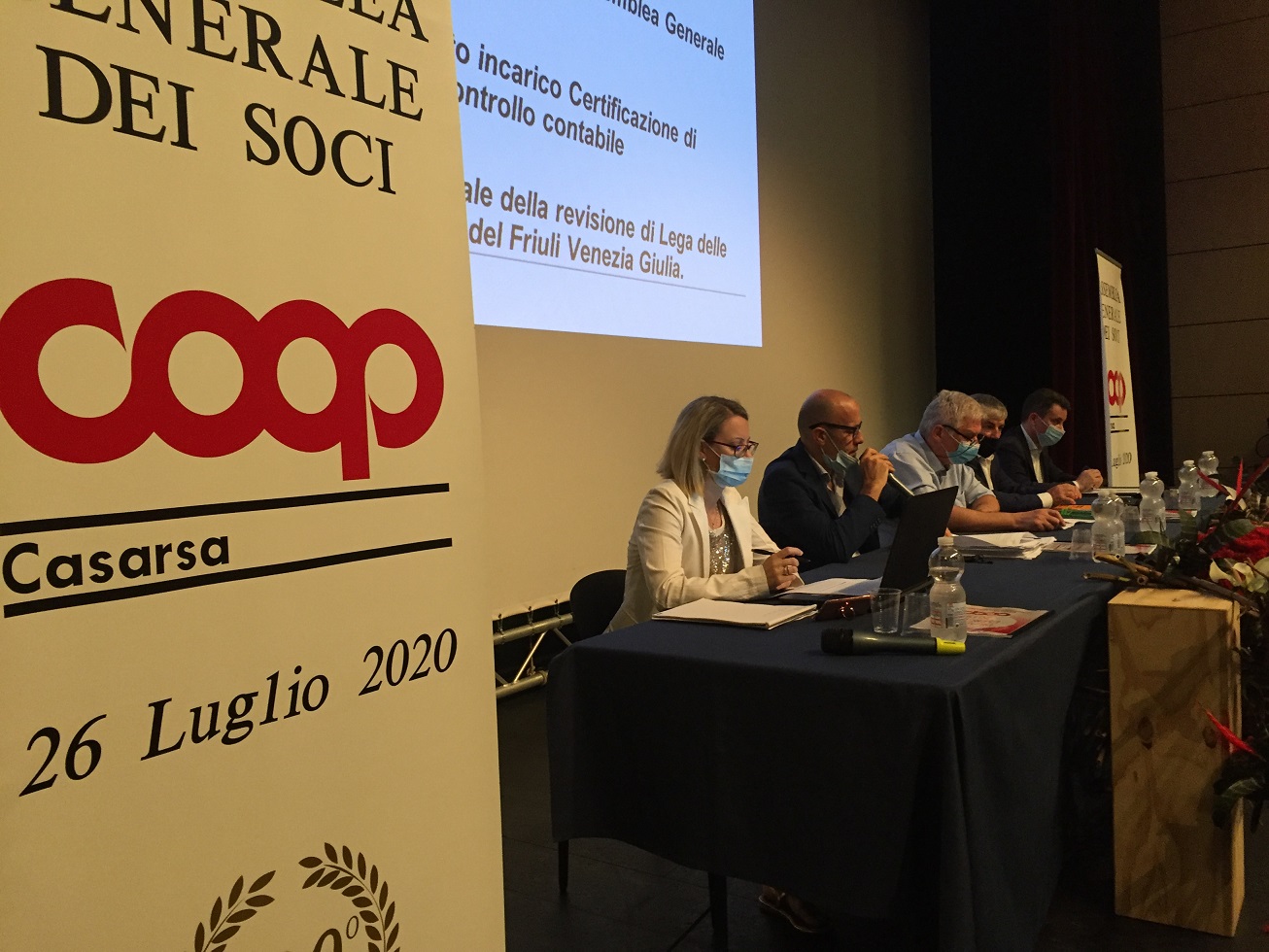 Una realtà solida e attiva da un secolo, che ha affrontato con coraggio le settimane dell’emergenza Covid-19: Coop Casarsa, nata nel 1919 come spaccio di paese e ora gruppo con 14 punti vendita tra Friuli Venezia Giulia e Veneto, ha concluso le assemblea annuali per i suoi oltre 16 mila soci. Il fondamentale appuntamento per la vita della cooperativa, che di consueto si svolgeva a fine maggio, a causa dell’emergenza coronavirus è slittato a fine luglio. Domenica 26 luglio nel teatro casarsese Pier Paolo Pasolini i soci della provincia di Pordenone (lungo la settimana analoghe assemblee si sono svolte nei giorni precedenti per quelli della provincia di Udine a Faedis e di Treviso a Francenigo) hanno approvato all’unanimità il bilancio 2019, chiuso in sostanziale pareggio (più mille euro). La riunione si è tenuta nel rispetto delle normative sanitarie.