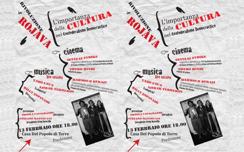 La coop sociale Noncello, in collaborazione con la giornalista Orsola Casagrande, ha organizzato due incontri per presentare i protagonisti della scuola di cinema di Serekane (Kurdistan siriano). Gli eventi si terranno a Pordenone il 13 febbraio e a Venezia il 14.