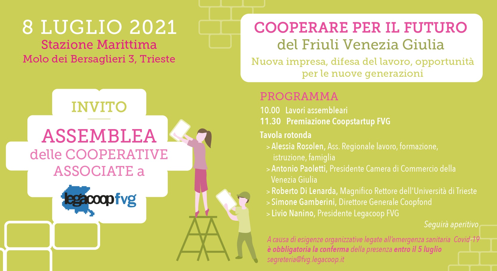 “Cooperare per il futuro del Friuli Venezia Giulia. Nuova impresa, difesa del lavoro, opportunità per le nuove generazioni” Questo il tema al centro dell’Assemblea delle Cooperative aderenti a Legacoop FVG che si svolgerà l’8 luglio a Trieste presso la Stazione Marittima.