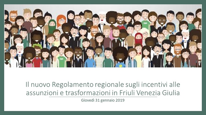 Giovedì 31 gennaio p.v. presso la Camera di Commercio di Udine – Sala Valduga, Legacoop FVG in sinergia con le categorie economiche del territorio, ha organizzato un incontro di approfondimento sul nuovo Regolamento Regionale sugli incentivi alle assunzioni e alle trasformazioni (ex L.R. 18/2005).